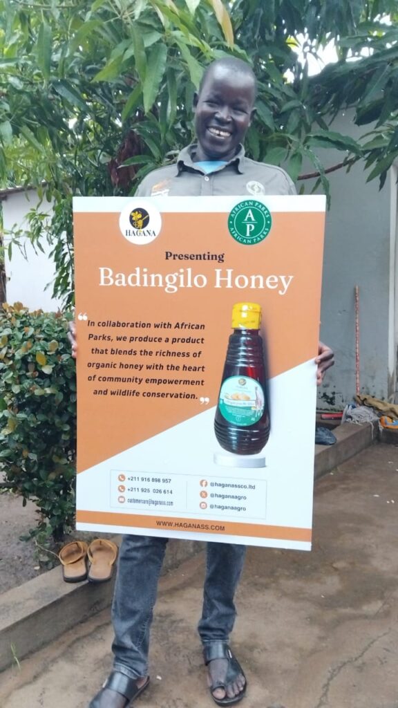 “Our bees are giving us a better future,” says David Liwaya, Community Development Coordinator at African Parks South Sudan. “Every jar of Badingilo Honey means a family can earn and eat, and it also means the park is safer. People and nature can live well together.”